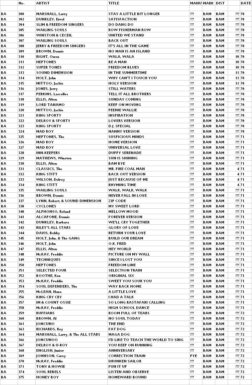 singles using a BAN-300 numerical series. The same label design was