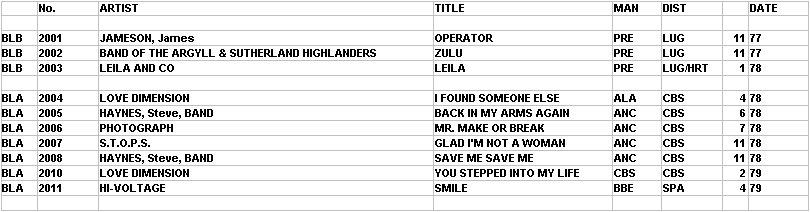least ten singles, with catalogue numbers in a BLB-2000 / BLA-2000 series,
