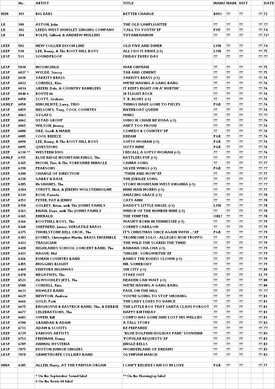 (and albums?) had numbers in the REM-100s. In 1974 Rockingham Enterprises