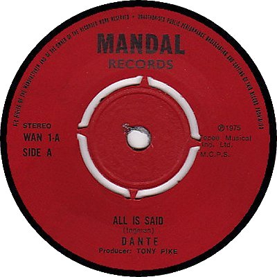 apparent large gap in time between that single and Dante's 1975 release 'All Is Said' b/w 'Send