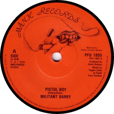 Militant Barry single shown above, 'Pistol Boy' (PFU-1805 / LYN-6427); as the