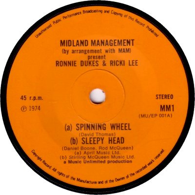 record shown above, 'Spinning Wheel', by Ronnie Dukes & Ricki Lee (MM-1;
