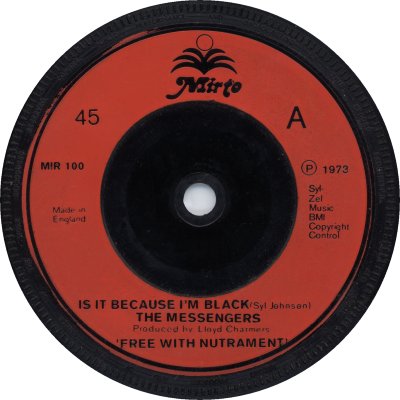 ithe one shown above, 'Is It Because I'm Black' b/w 'Just Like A Shelter' by The