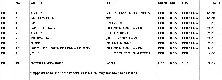 in the MOT-0s have matrix numbers that are taken from Beacon's main 45-000 series. Mother records