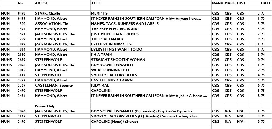 1973. Its singles shared a numerical sequence with the other CBS labels,