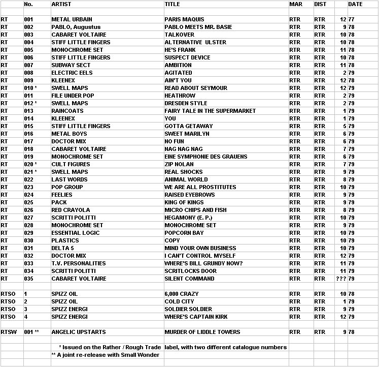 1982. As a record company and as a distributor Rough Trade followed