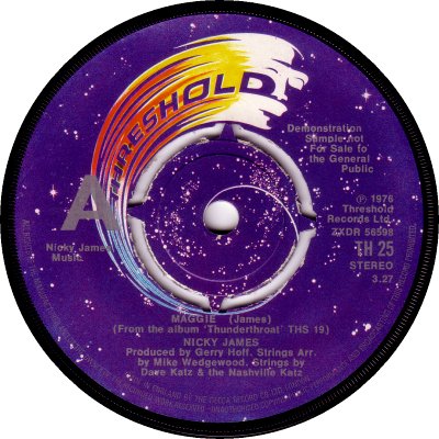 album ('Thunderthroat'; THS-19, 1976) and single ('Maggie' b/w 'Bottle Of Cheap Red Wine'; TH-25,